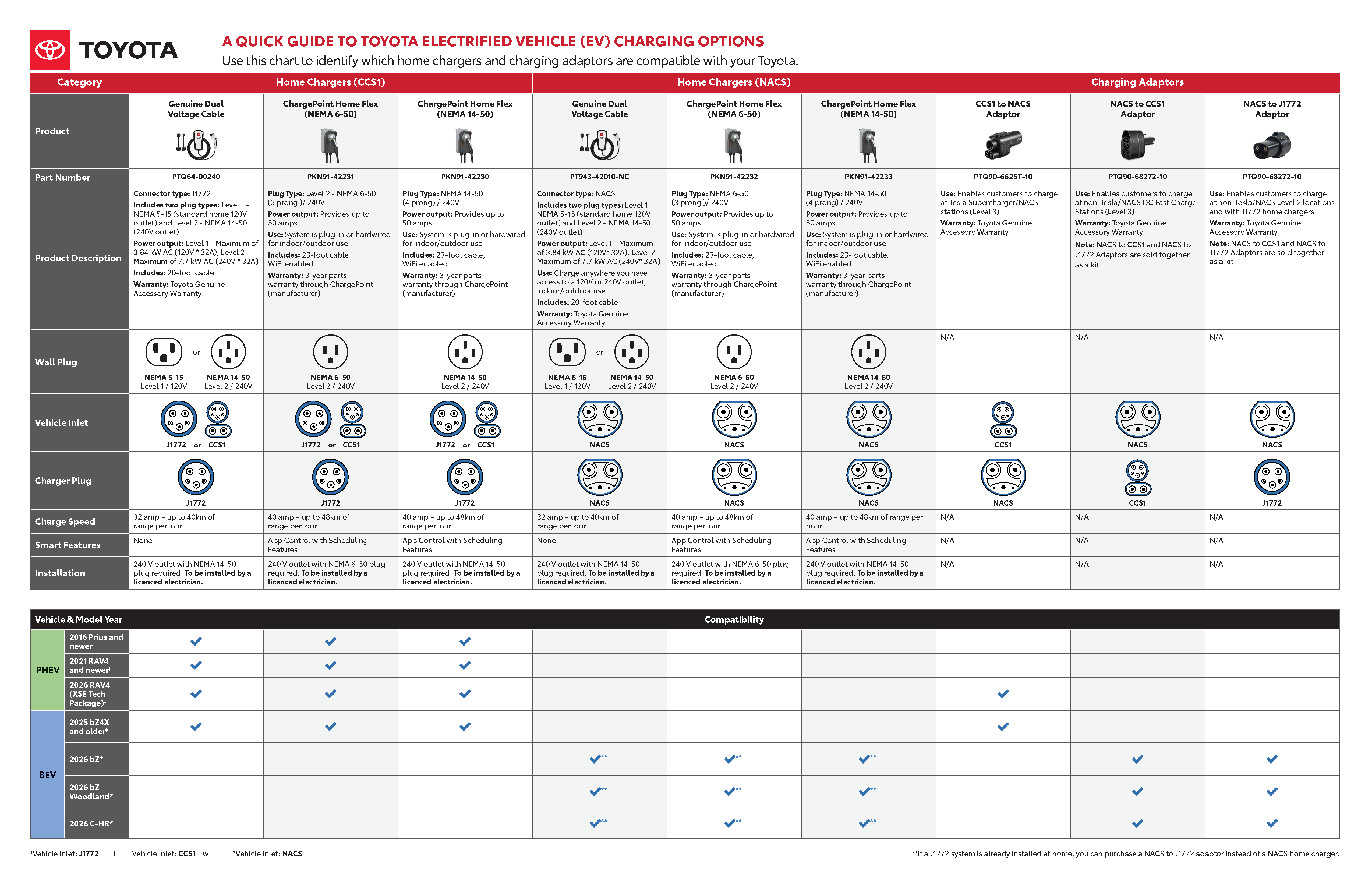Curious which charger or adaptor works with your Toyota EV or Plug-In Hybrid? View our official Toyota Charging Options Guide — a simple comparison chart that explains connector types, charging speeds and vehicle compatibility, so you can choose the right home charging solution with confidence.